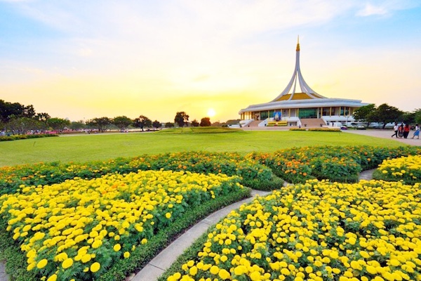 - Area 6-The Sanam Rasdara and Sport CenterThe Sanam Rasdara and Sports Centre covers an area of approximately 70 rai. The musical pavilion and large lawn in front is used as an outdoor stage for various performances. The lawn is also used as a market place for ornamental plants during the ‘Magnificent Plants that Beautify the Suan Luang Rama IX Flowers Festival’ held in early December. The Sports centre includes a swimming pool and tennis courts.International GardenFurther to six aforementioned areas an international garden featuring arrangements from different regions of the world can also be found in Suan Luang Rama IX Public Park: Chinese garden and Japanese Gardens are representing the eastern countries of the world. Spanish, English, French and Italian Gardens are representing countries of the western world. The United States of America is represented by Geodesic dome used for planting drought-resistant plants such as cacti.